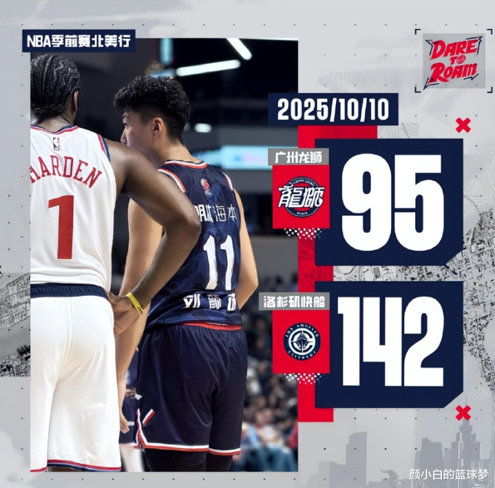 北京时间10月10日,NBA季前赛,CBA广州男篮95-142惨败NBA洛杉矶快船男篮,这场比赛广州队是在下半场崩盘,第三节8-42被碾碎,第三节打完后比赛实际上就已经进入垃圾时间,快船开始上第三阵容。
